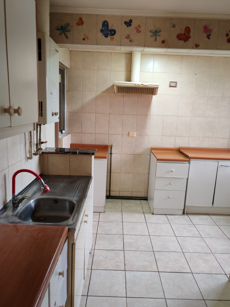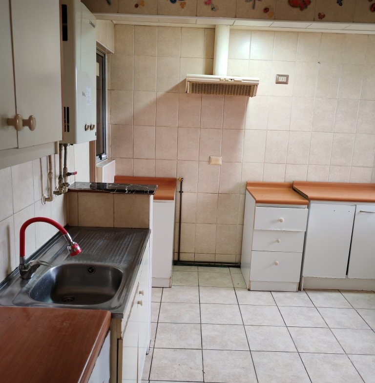 Cocina ampliada amoblada con espacio para comedor diario y loggia